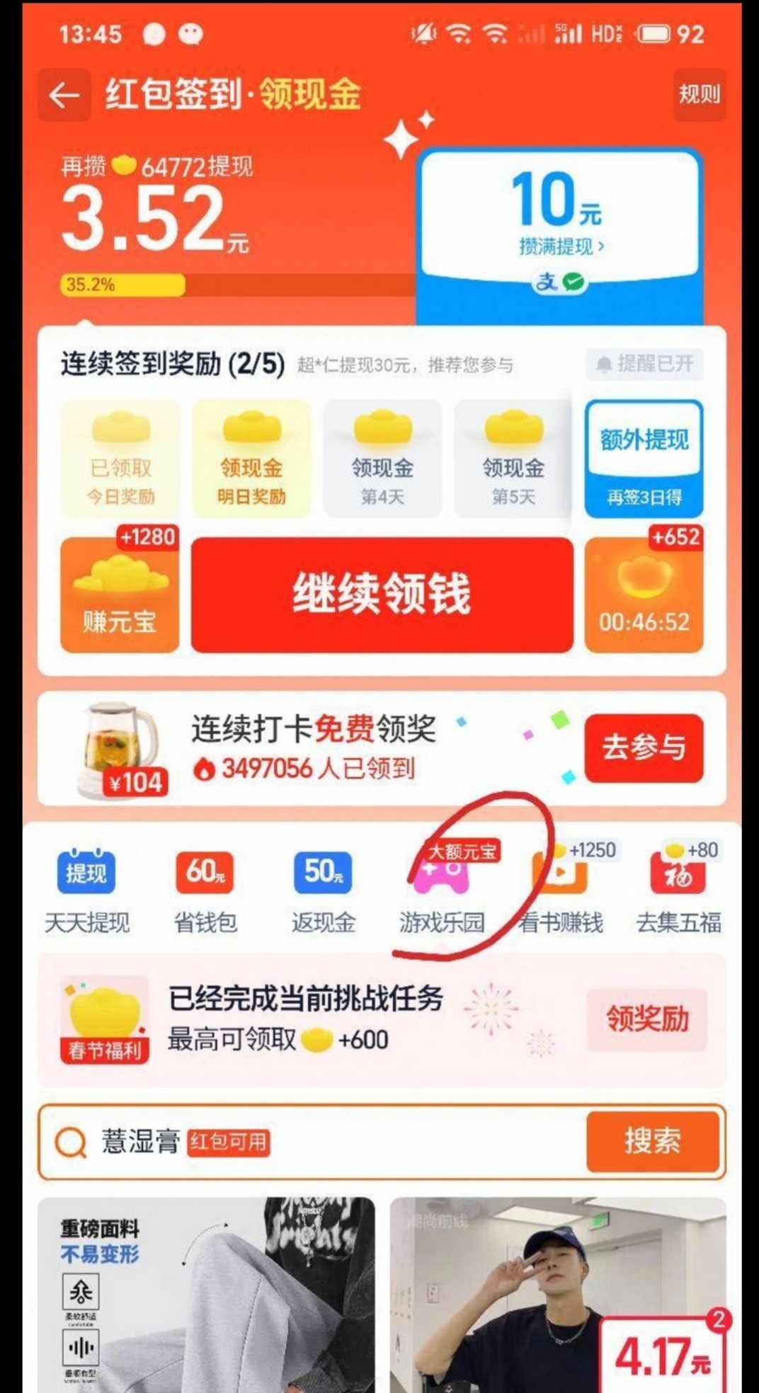 淘宝-我的-红包签到(有入口的进去签到)-点游戏乐园-找这俩游戏(打到首充关-西游那个直接充值1元,第二个打到10级会出1元秒杀都是1块申请40000元可以兑4块钱)搞完提现就行,其他游戏我没看,这俩游戏是比较快的,其他游戏可以试试看有没有1块充值入口有的说下,对了进游戏要看下有没有充值任意金额的最高40000元宝有的在申请没有别申请。