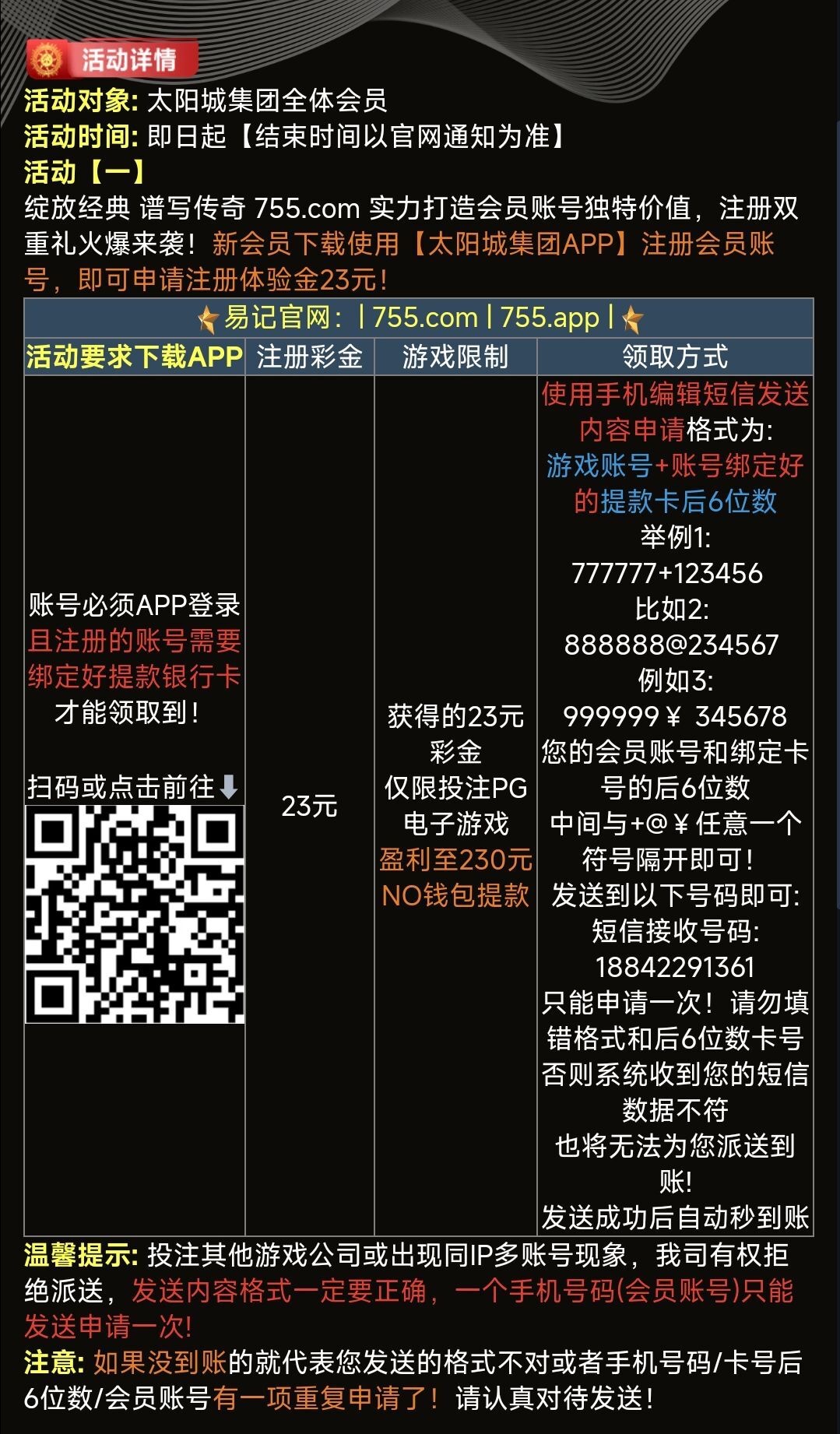 本站声明 1、本帖标题:【太阳城755】— 注册送23