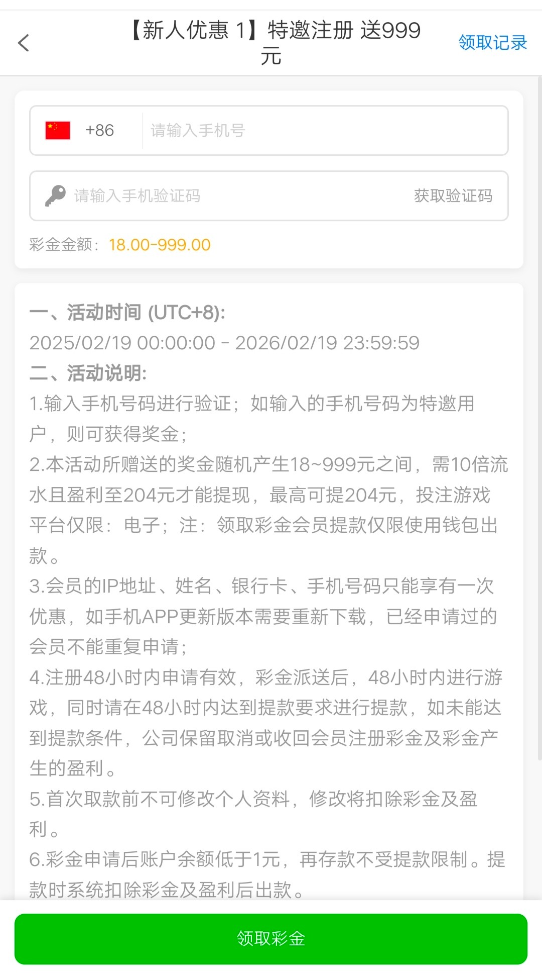 注册登录,优惠活动自助申请碰瓷特邀彩金,据说最多提款204,具体自测吧,不送无视。