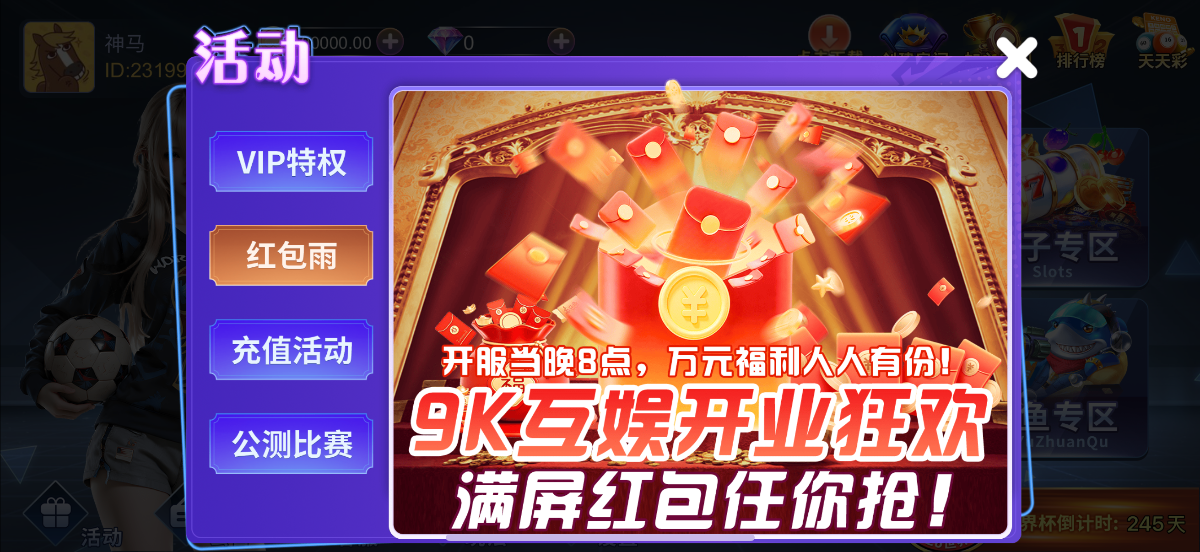 注册进入游戏自动发放10万积分