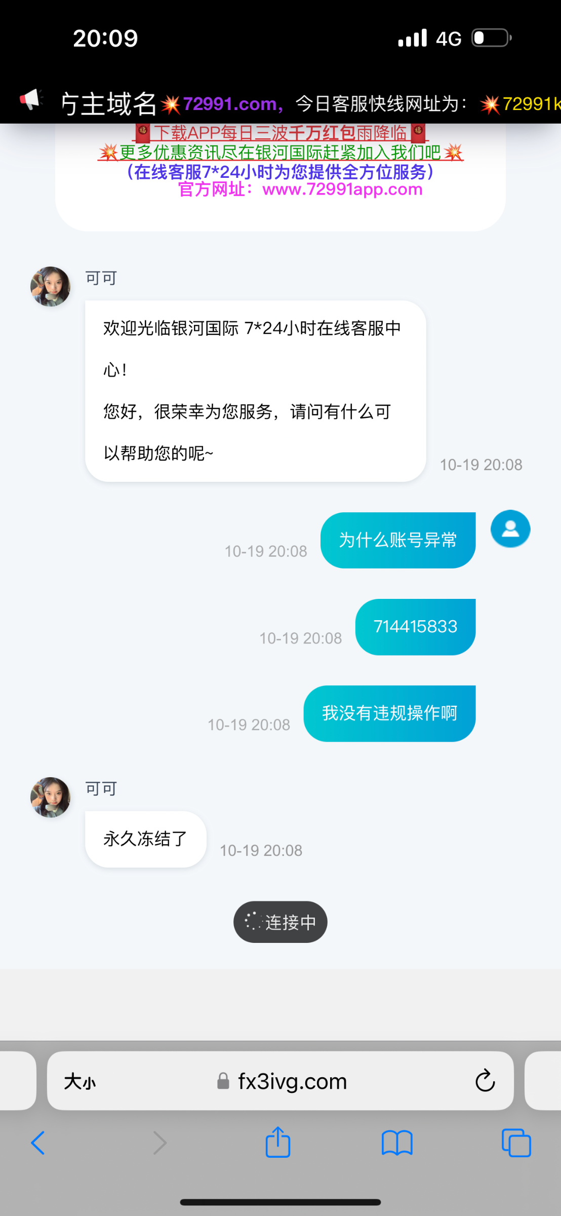 被黑了充了50下3000账号直接冻结了