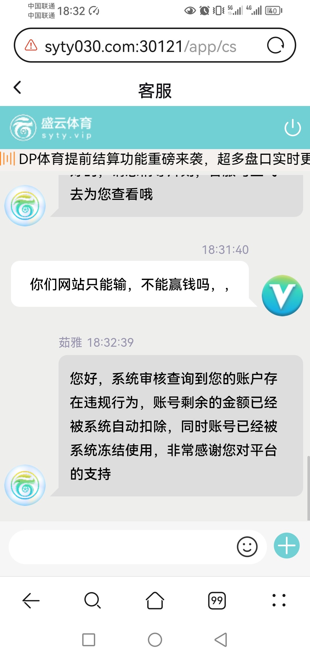 现在狗庄才不讲什么格局,前天我冲100送了38,打200多流水可以下,我玩cq9有点卡,当时有110我就下了,第二天中午给我打电话说还有58没领,充100送,我说行,我充了问他要彩,他说我是女骗子,套彩的,他故意骗我钱,不给下了,号也给我封了,就因为多下他十块,妈的,专门来骗我,贱狗庄