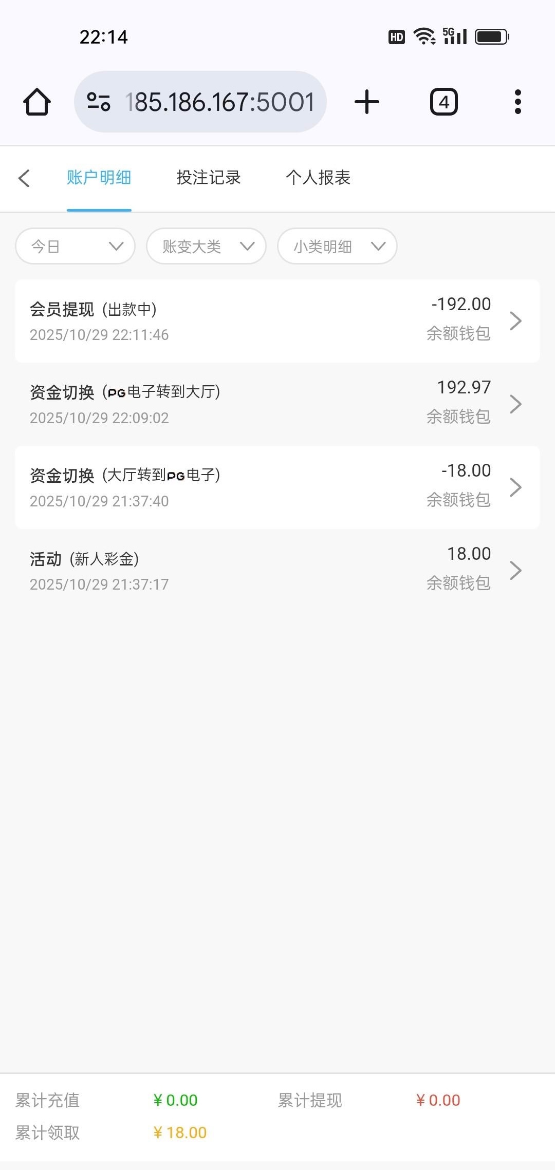 出款情况:自测(