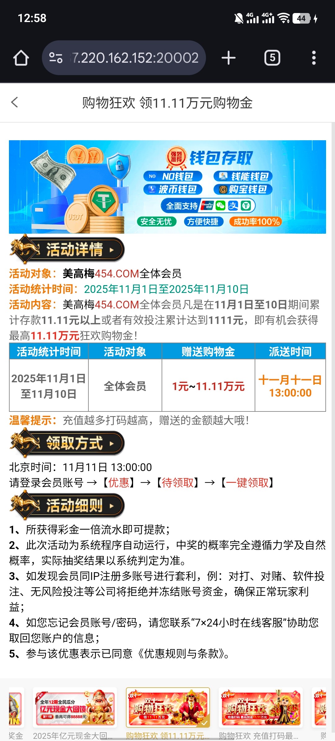美高梅 双11回馈