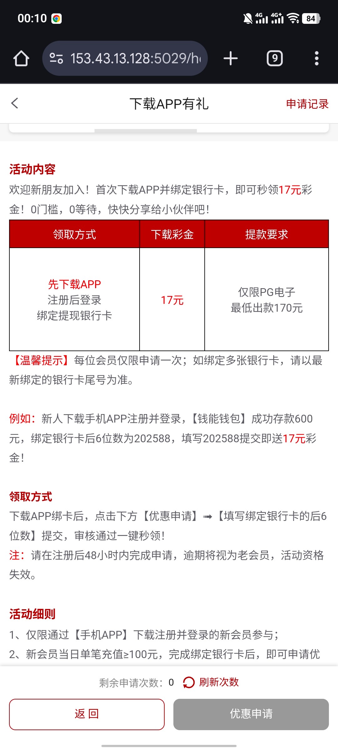 活动里面有介绍 下载App绑定信息 申请