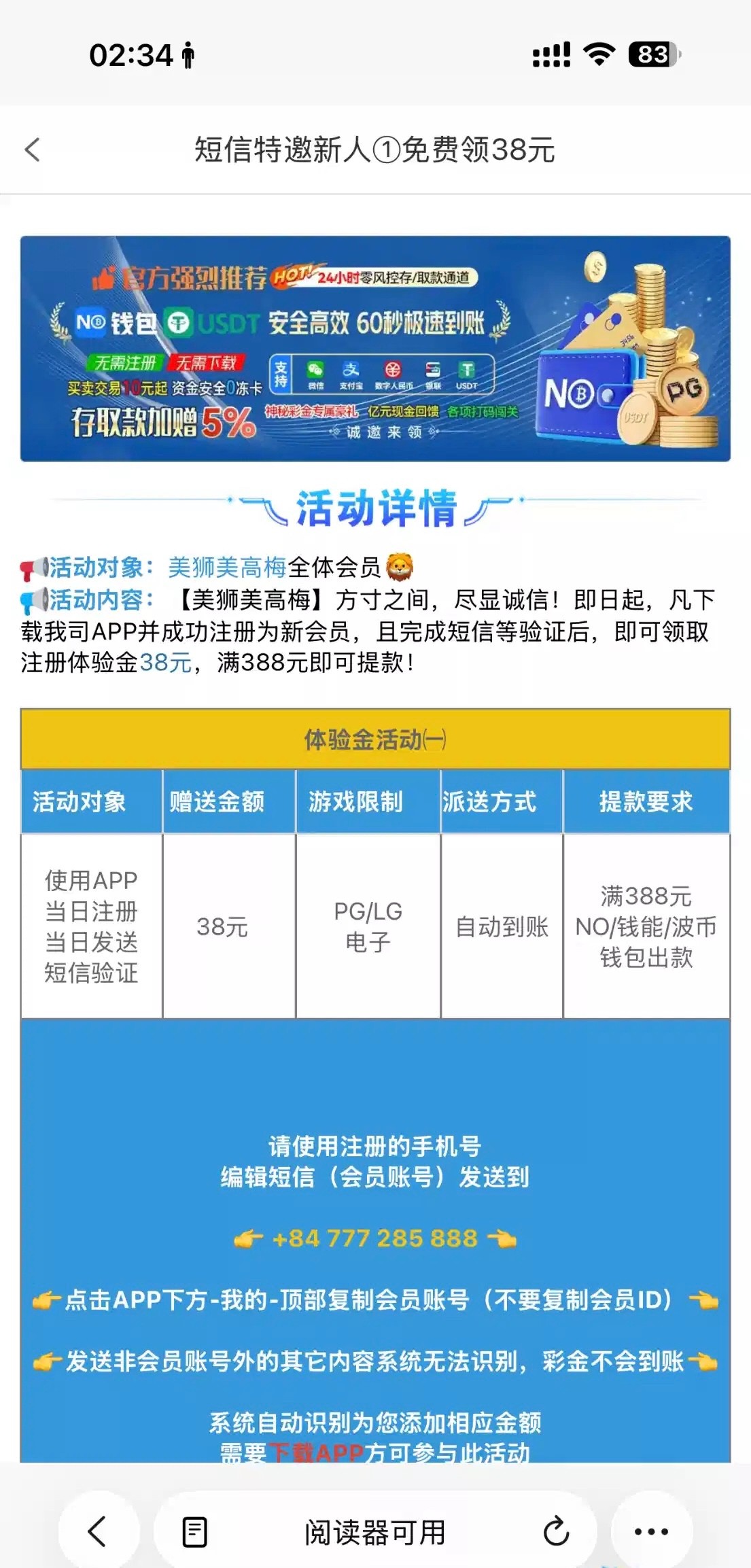 注册了下载去发短信就送38