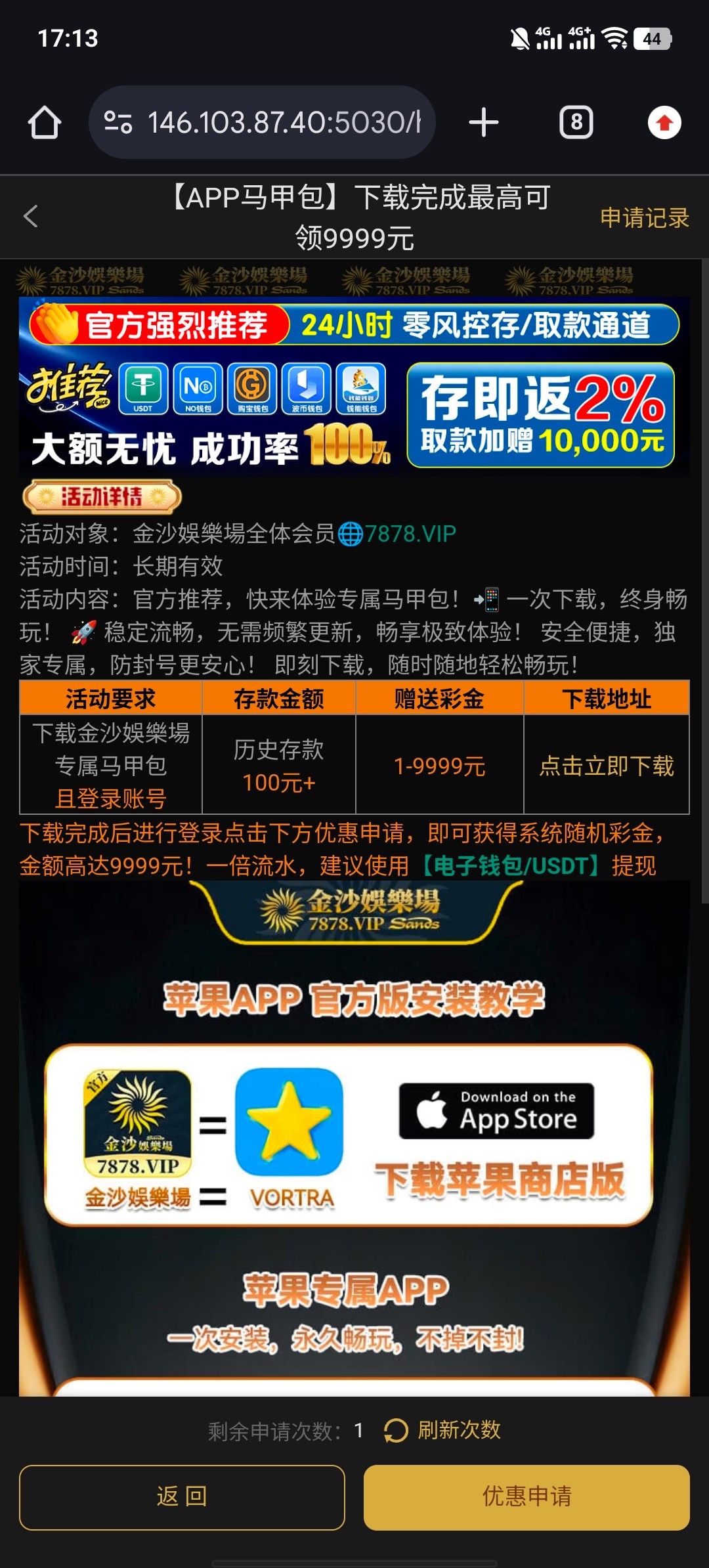 历史充值过100+的自助申请