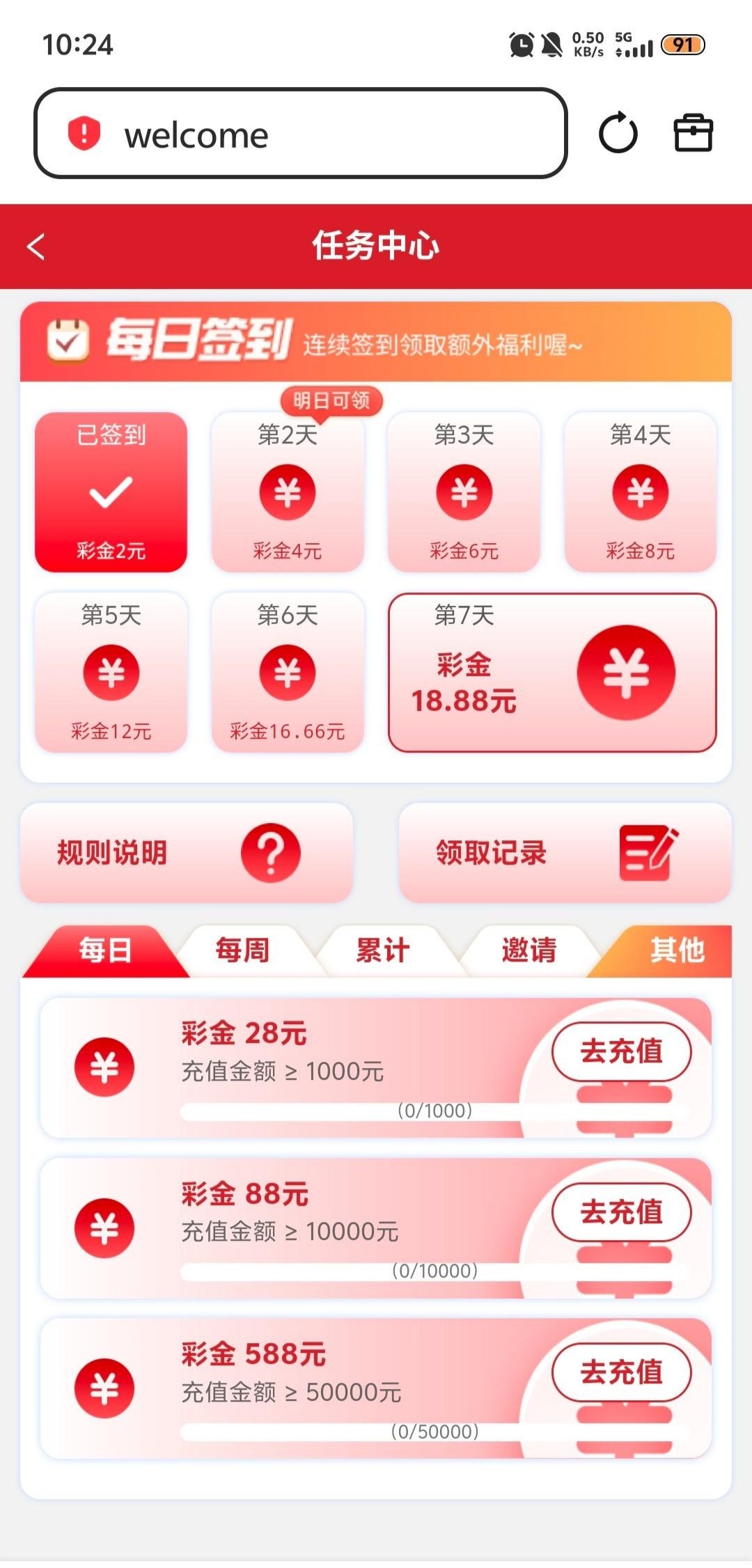 我一毛没有充值,签到一周了一毛没有打出来,还不知道是不是黑平台链接dzjvip8.com