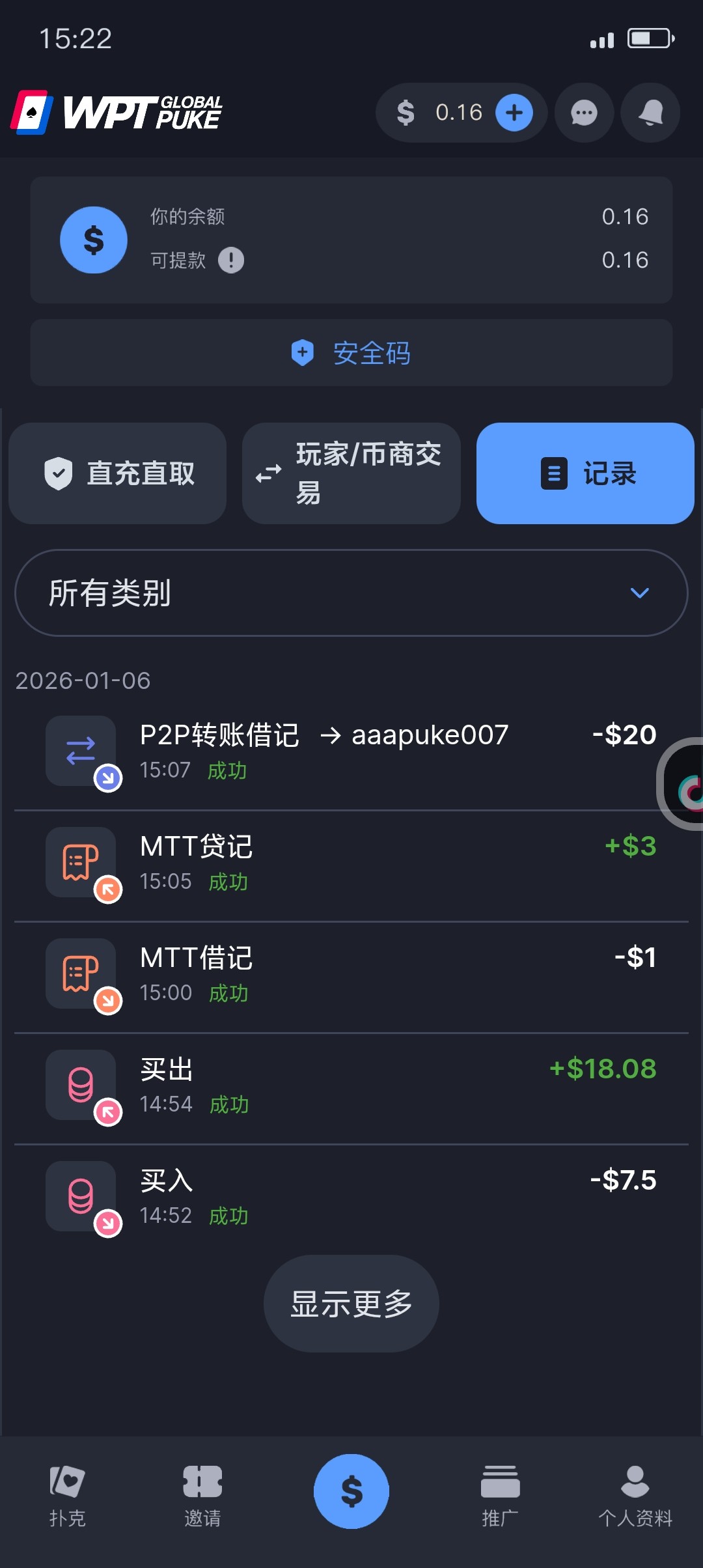 注册后拿图去找客服领取88彩金+66彩金已经出款15u+20u,建议用中间那个商户卖家出款,那个比较快   wpt001.com