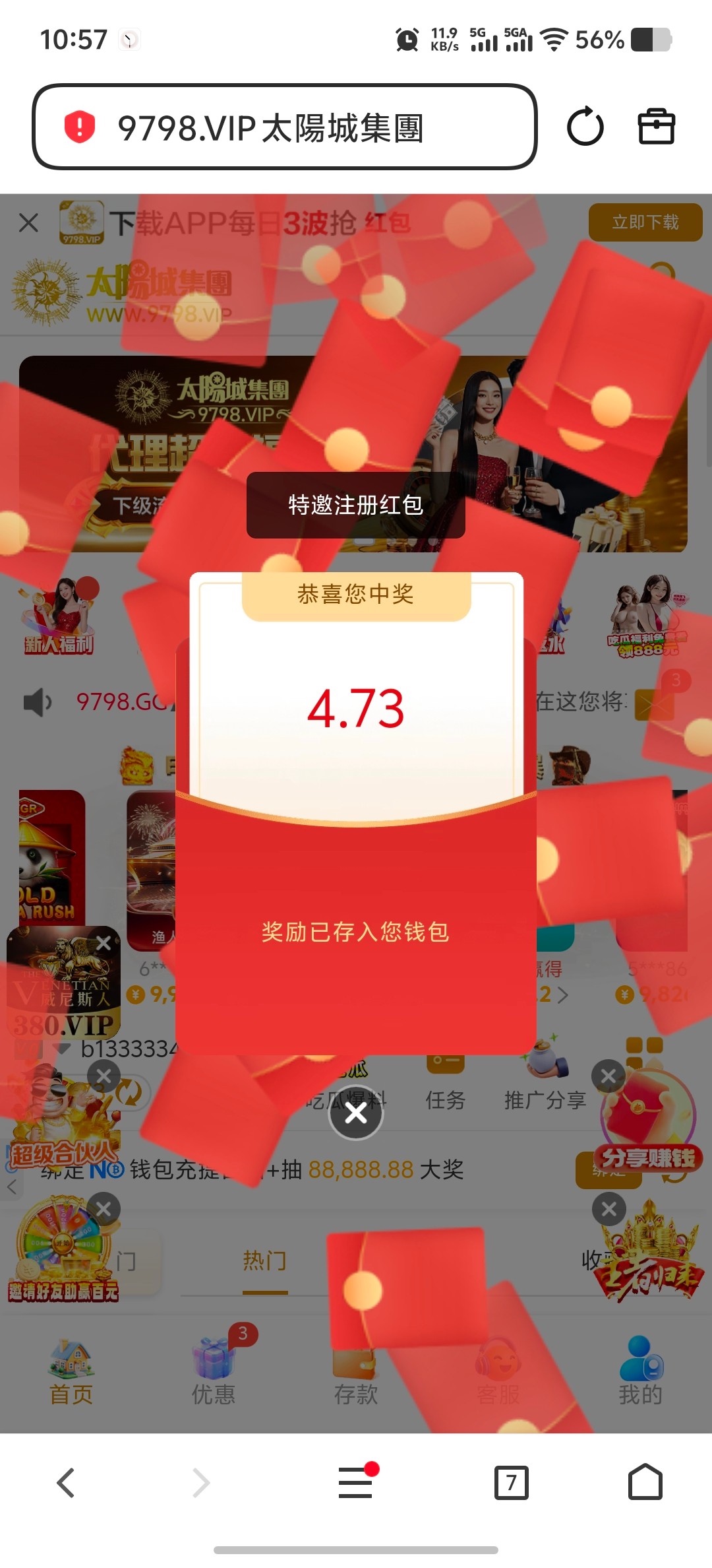 【太阳城9798】注册红包