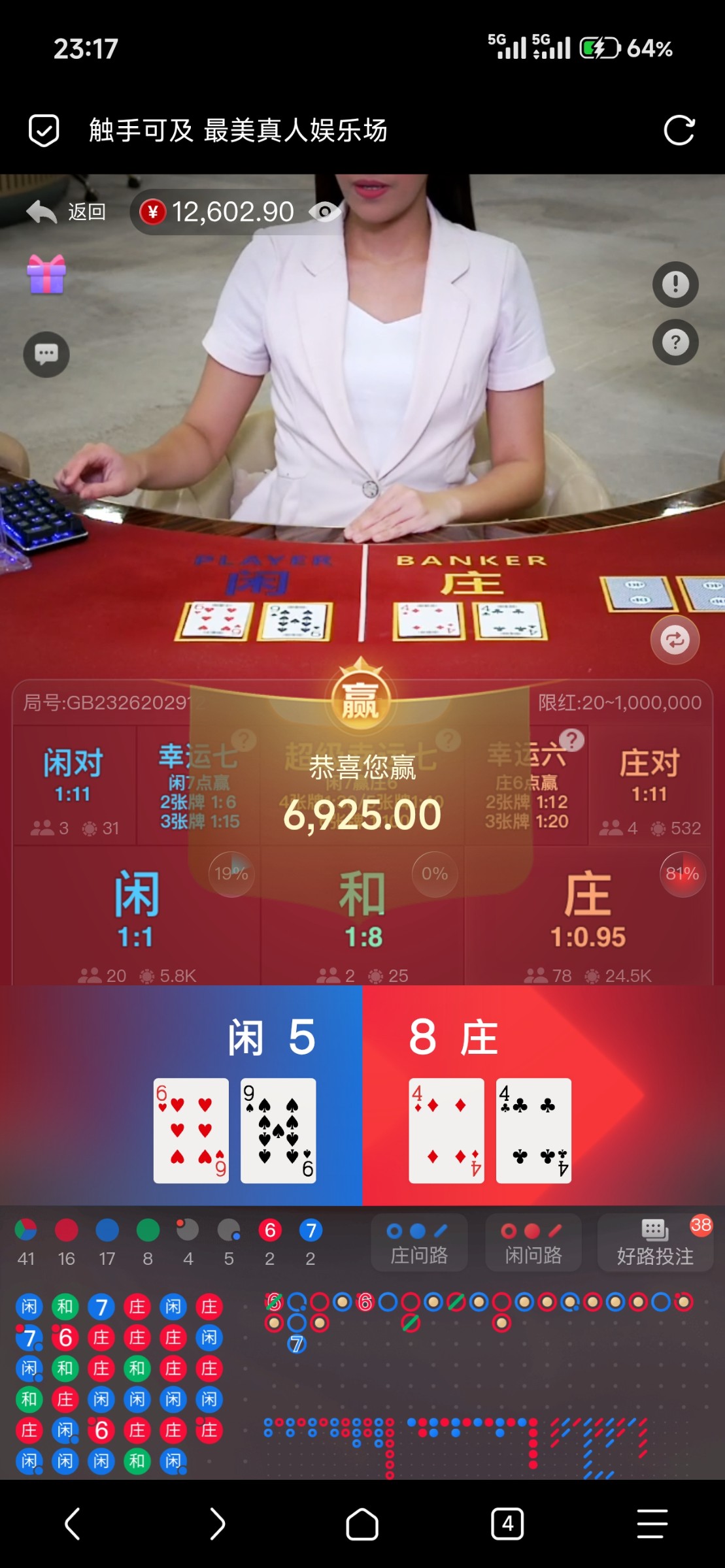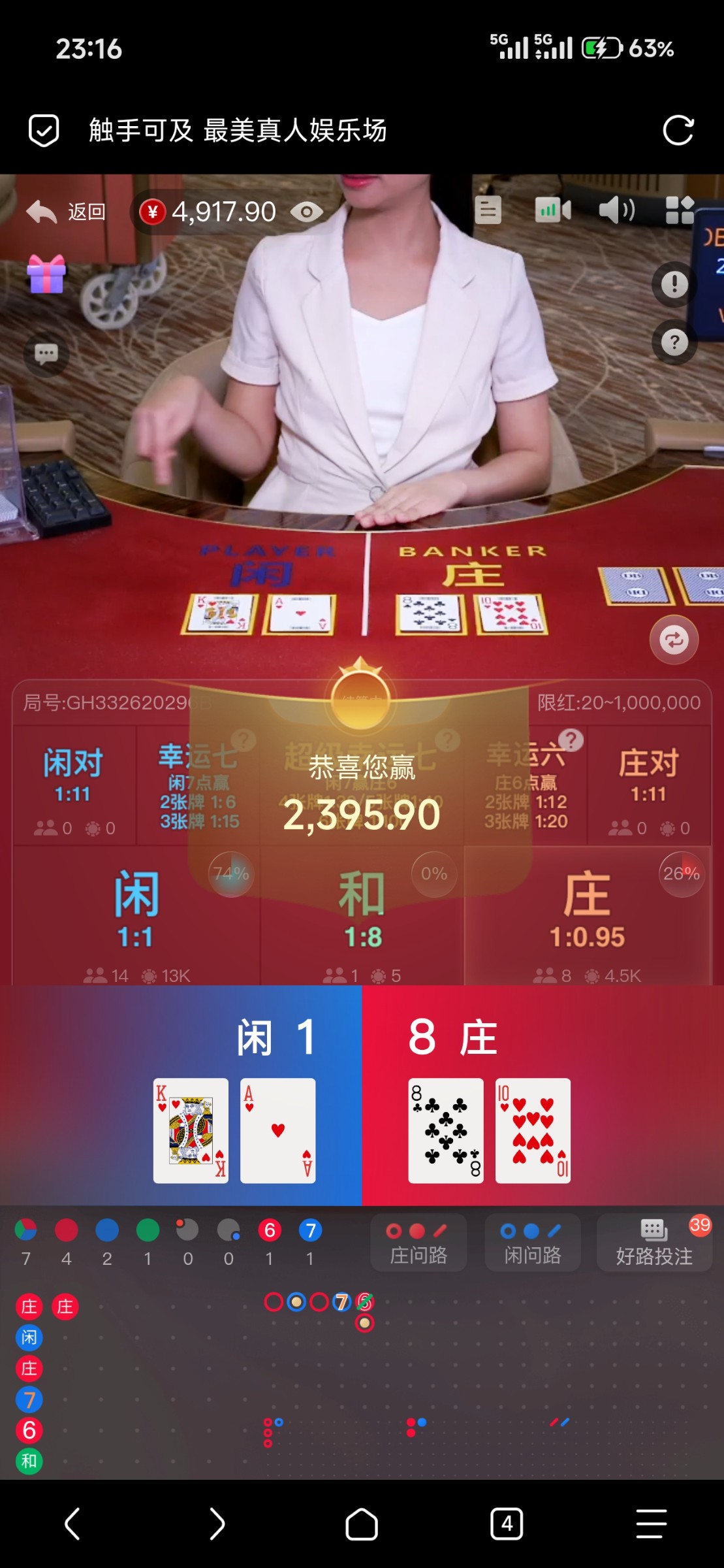 蹲了一年都没遇到这样路子,上次遇到这路子还是24年底,11块反水遇到连开18个闲,刚好我从第一个闲开始买,赌百家乐我从来不买庄,命好遇到长龙11块打到7w!也因为这样在百家乐输翻天了,