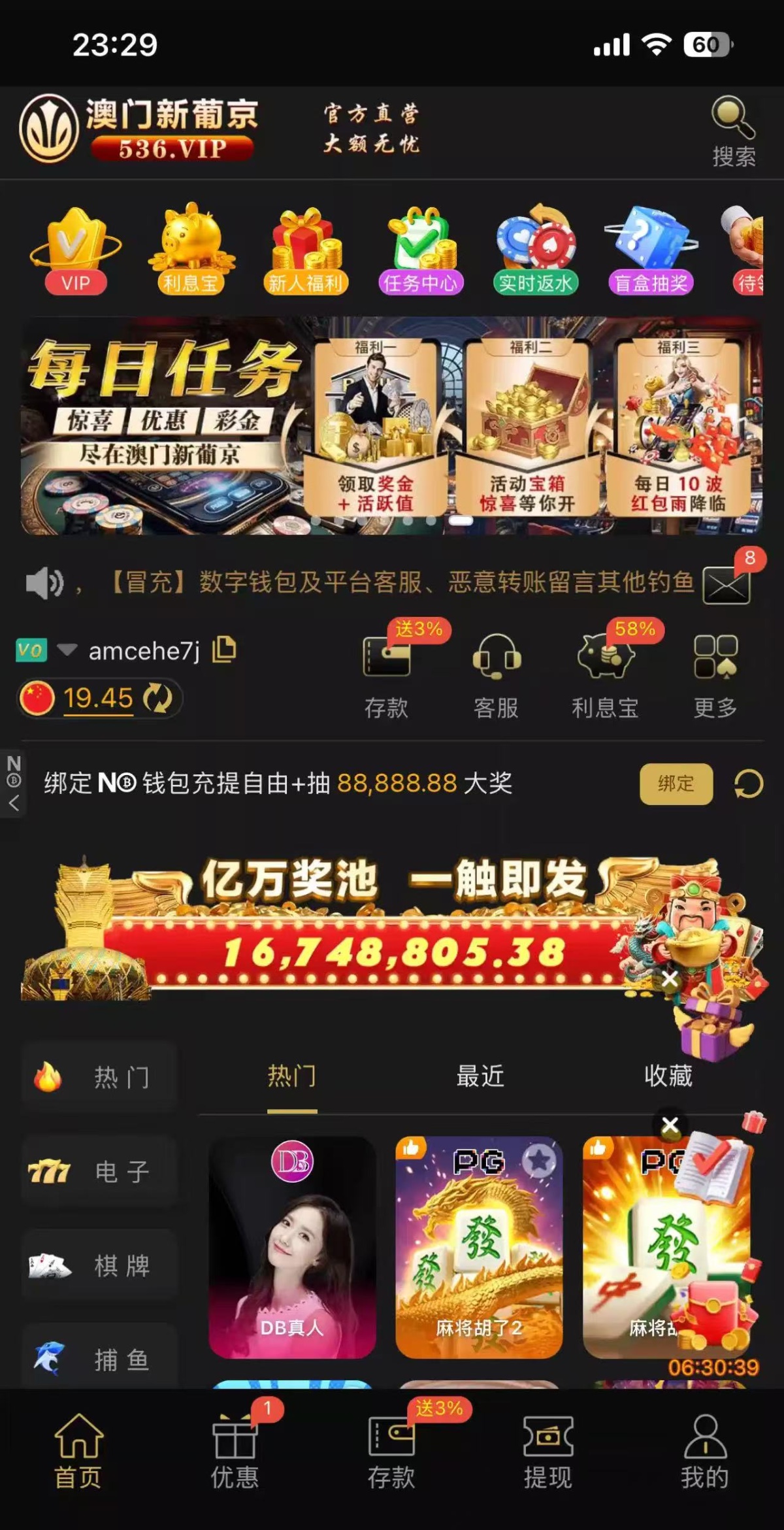 刚刚登录上去看见有19块钱 有号可以去看看地址 536.vip 从来没充值过