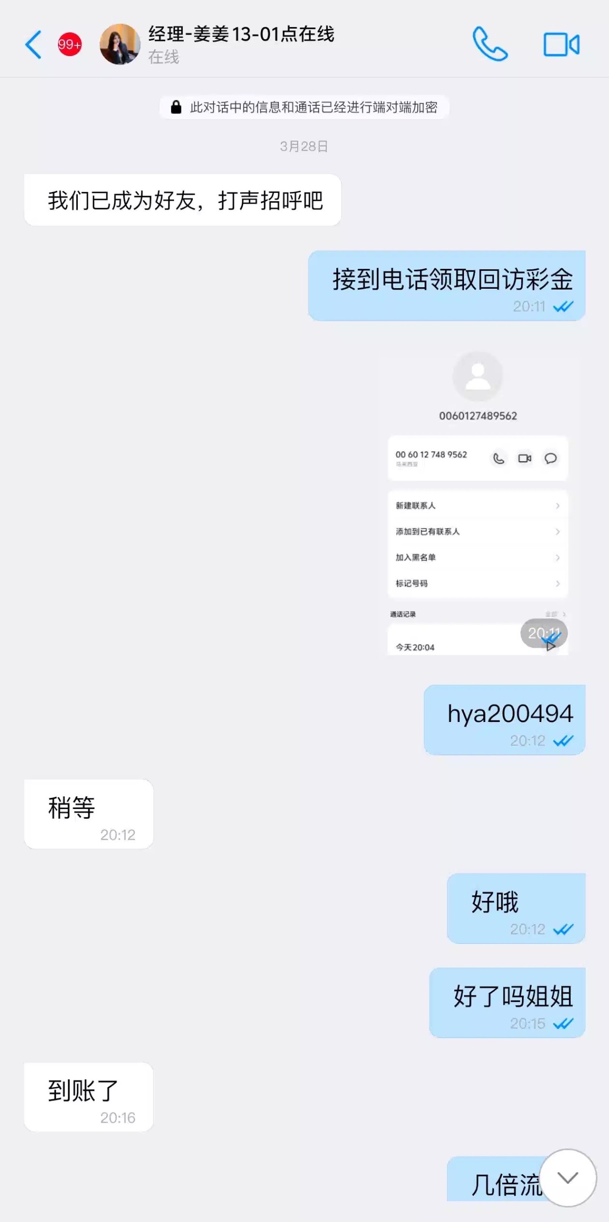 我是接到电话联系在线客服加的专属经理(我没充值过)